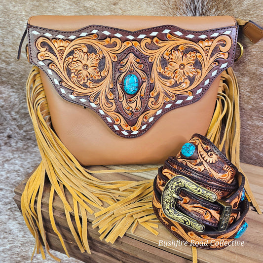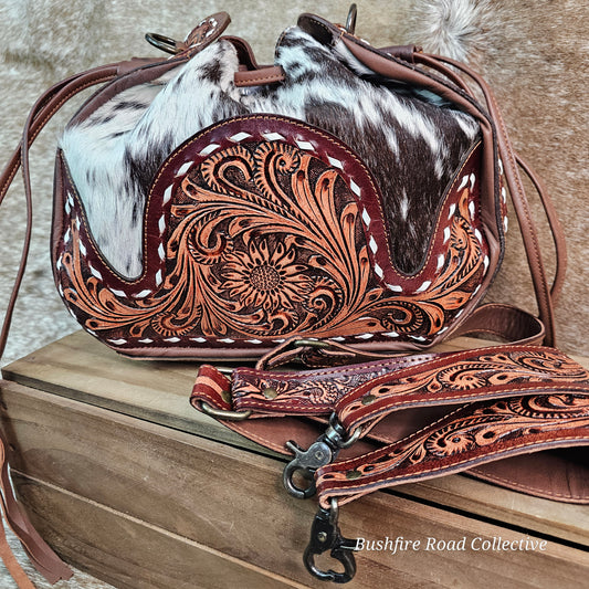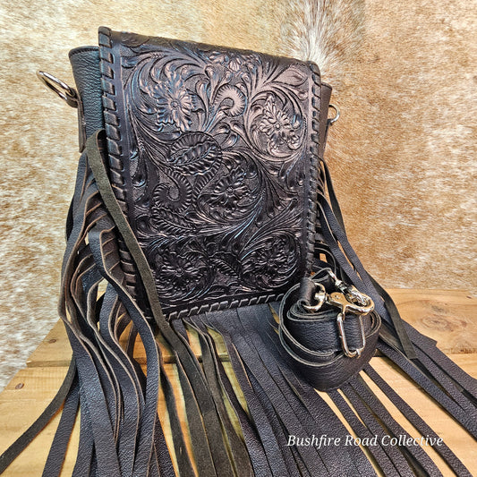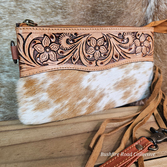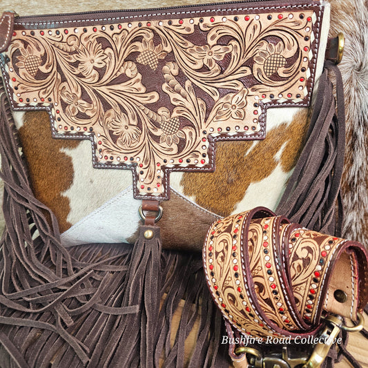 Carly Tooled Leather & Cowhide Fringe Bag